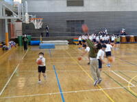 チームに分かれて色々なルールのドッジボールを行っています。4年生から6年生までドッジボールに楽しく取り組んでいます。