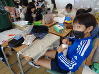 「マイデザインシート」を作成し、作品完成に向けてそれぞれがこつこつと仕上げています。手芸に親しみながら楽しく活動しています。