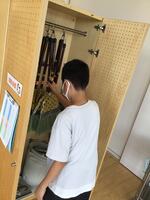 各教室の掃除用具入れや雑巾掛けの整頓の呼びかけをしたり、ごみ収集作業のサポートをしています。