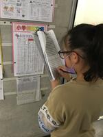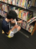分類記号を確認しながら本棚の整頓も行い、みんなが気持ちよく利用できる図書室を目指して活動しています。