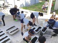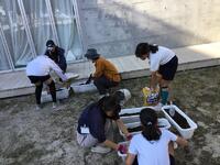 昨年度は、卒業式にむけて、ボランティアの方々の協力の下土作りをしました。