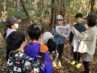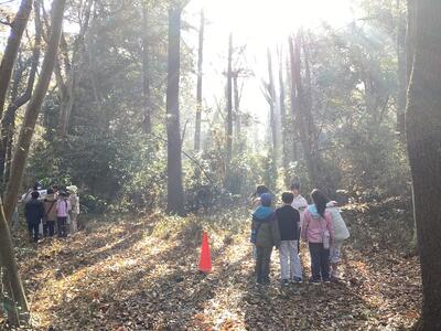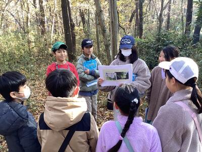これまでにもおおたかの森小学校の5年生が代々、市野谷の森やオオタカなどの動物たちを守るために、自分たちにもできることを学習し、取り組んできました。2年前、当時の5年生が学習したことを発表するために、3年生だった今の5年生をネイチャーガイドとして森を案内してくれました。今年は、いよいよ自分たちが森を守る番です!11月下旬、自分たちが学んだことを【土壌】【植物】【動物】【森の役割】の4グループに分かれて、4年生に発表しました。