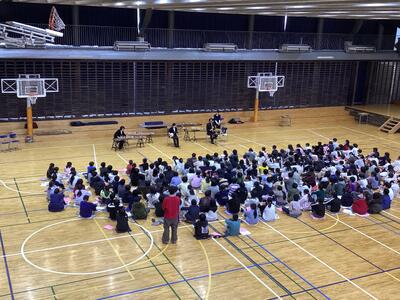 子どもたちは演奏を聞きながら、「お正月に聞いたことがあります!」「ルパン三世の曲も尺八で演奏できるなんて、すごい!」などと感想を伝え合っていました。