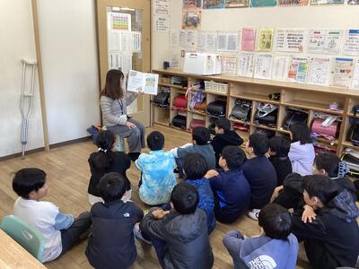 本校では、ボランティアの保護者の方々に読み聞かせをしていただいています。子どもたちは、毎回の読み聞かせを心待ちにしています。11月28日(金)冬休み前、最後の読み聞かせがありました。子どもたちの発達段階に合わせた本を選んでいただいていることに加え、保護者の方々の抑揚がついた、感情表現豊かな語り口調に引き込まれ、物語の展開に夢中になっている様子が印象的です。