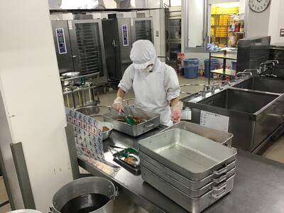 給食室には、調理員さんが何人いるのか知っていますか?正解は24人です。朝6時から、大量の野菜を洗って、切って、おいしい給食づくりをして