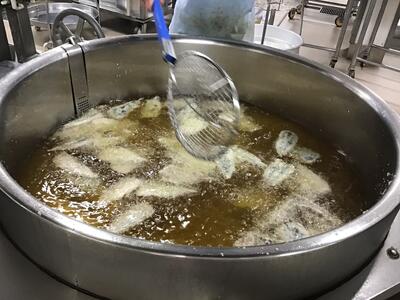 くださっています。今日は、8時から11時すぎまで、3時間以上かけて2150人分のコロッケを揚げてくださっています。