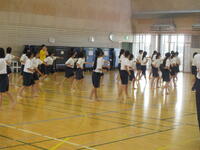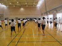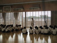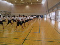 先日、講師の先生をお招きして行った空手授業の、型のテストが行われていました。どの生徒も、きびきびと演技を披露していました。