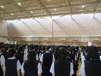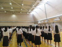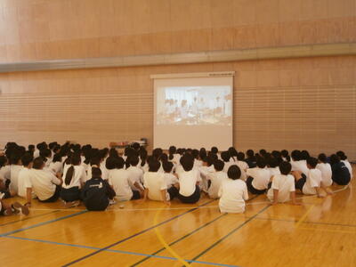 今日は、1年生が体育館で集会をしていました。昨日の合唱コンクールの振り返りです。合唱コンクールまでの各クラスの取組みや当日の様子、結果発表とその後を、先生が動画にまとめてくれました。皆とてもいい表情で集会に臨んでいます。コンクールには順位がつきますが、動画を振り返るとどのクラスも本当によくがんばっていて、比べることができません。思いを語る場面、練習での真剣な表情、すてきな笑顔、クラスみんなで気合いを入れる場面など動画の中の「歌った分だけ団結した」という言葉どおり、合唱をとおした成長がよくわかりました。学年担任制の中、担任の先生に引っ張ってもらうのではなく、先生方のサポートをうけながらも、自分たちで一生懸命に創り上げた合唱は音楽以外にもたくさんの成長をもたらしました。今後の1年生の活躍が楽しみです。