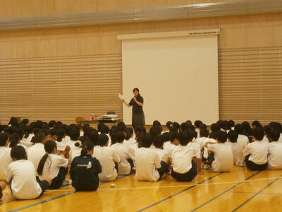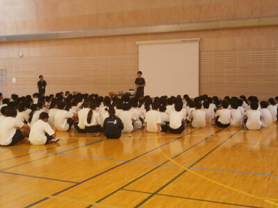 2年生は林間学校で頑張っているところですが、3年生は学校で進路集会を行いました。