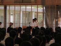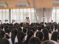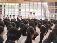 明日の生徒会本部役員選挙立会演説に向けて、リハーサルが行われました。