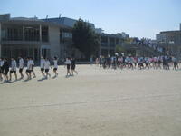 本日の2時間目に、小学校と合同で避難訓練を行いました。