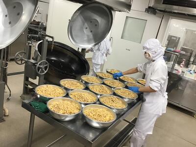 たけのこごはんには、今年採れた国産のたけのこを使いました。旬のたけのこの香りや食感を味わって食べましょう。