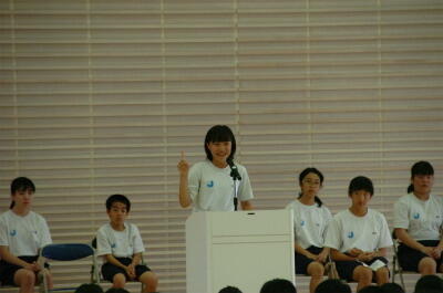 葛北英語スピーチコンテストに参加する生徒が、全校生徒の前で練習の成果を披露しました。