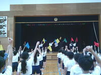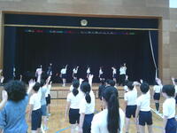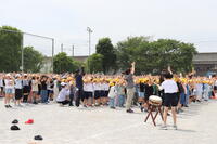 5月15日に陸上部を励ます会を行いました。陸上大会には、6年生の児童が多く出場します。友達の活躍を願い、応援団を中心に大きな声と手拍子で激励しました。