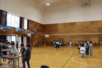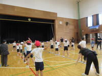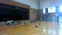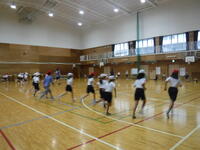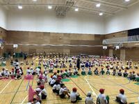 写真はアリーナでの学年集会・キャンプファイヤーの練習の様子です。