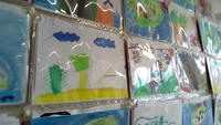 家や公園、学校で拾った葉っぱや木の実等を、色を塗ったり絵をかいたりして一つの作品にしていました。