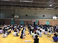 子どもたちは、外のつどいの広場にて、入所式を行いました。入所式では、赤城青少年交流の家の職員の方からのお話に真剣に耳を傾けて聞いている様子が見られました。