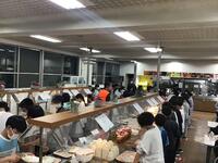 夕方になると、体育館で「夕べの集い」を行い、他校の児童と交流した後、仲間と一緒に入浴や夕飯を楽しみました。夕飯はバイキング形式となっており、各々、自分が食べたい物をよそい、おいしそうに食べていました。