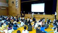 5月15日にアリーナで、スクールロイヤーの先生から、「いじめ」の定義やいじめに関わる法律、実際のいじめの例についての講話を聞きました。「いじめについての法律があると初めて知った。」、「ささいなことでも、いじめになることがわかった。」、「いじめになるようなことを、これからもしないようにしたい。」など、いじめについての理解を深め、いじめを減らそうとする思いを高めました。