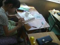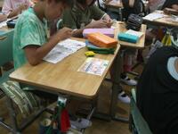 日光彫体験を行いました。独特の形をした彫刻刀に苦労しながら、自分の考えたデザインを粘り強く彫っていきました。完成した作品を嬉しそうに見つめている児童の表情がとても良かったです。掃除もきちんとました。