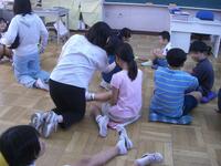 放課後は、職員の救急救命研修が行われました。胸部圧迫の方法やAEDの使い方、連携の仕方など学びの多い研修となりました。