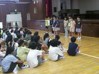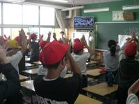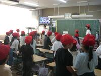 1年生が堂々と入場して会が始まりました。体育館で参加している学年はもちろん、3,4年生の教室からも歌声や返事が響いてきて、全校の一体感はすばらしいものがありました。