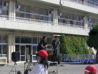 会が始まると、まずは1年生が、手遊びでお客様と交流しました。♪おちゃらか♪ や ♪ずいずいずっころばし♪などで楽しみました。また、校歌とメダルをプレゼントしました。