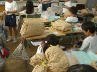 先週、1年生はアサガオのツルを抜き、リースを作りました。長く育ったツルは、複雑に絡まり合い、ほどくのは大変な作業でしたが、粘り強く取り組んで、みんな無事にリースにすることができました。このリースは、このあと飾りつけを行い、きれいにして家に持ち帰ります。
