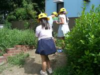 2年生は、生活科で野菜を育てています。もう実ができているものもあり、育ち方には差がありますが、児童が自分の苗を大切に思う気持ちは皆一緒です。登下校の際には、欠かさずに水をあげています。