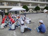 今日は、保幼小関連小学校見学会が行われました。近隣の幼稚園・保育園の先生方が見学にいらっしゃいました。1年生がシャボン玉で活動する時間を見学していただきました。1年生は、ストローやうちわ、段ボールなどシャボン玉ができそうな道具を、自分たちで工夫して用意しました。たっぷり作られたシャボン液を思う存分使い、「ぬるぬる~」といいながら楽しく活動しました。活動中には見学に来ていた先生方も一緒に加わり、「できたね。」「上手だね。」とたくさん声をかけていただきました。卒園してから1年生としての成長にとても喜んでいたようです。