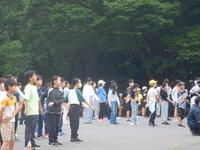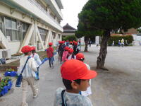 続いて、校庭への避難です。決められた順番を守って並び、早くでも安全に気を付けて校庭まで避難することができました。今日は、避難経路を知ることも大切な目標でした。事前の担任からの話をしっかり聞き、正しい経路を通ることができたようです。