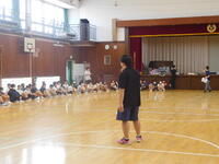 はじめに陸上大会の表彰を行いました。頑張った選手たちが全校に紹介されました。ミニバスケットボール部、音楽部もがんばってほしいです。