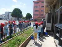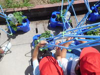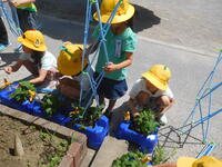 2年生が育てている野菜の丈が大きくなってきました。そこで、今日子ども達は支柱をたてていました。今後、ぐんぐん大きくなることが予想される苗たちですが、これで一安心ですね。子ども達は水をあげながら、「美味しくなるかな。」「ピーマン好きなんだ!」と収穫を楽しみにしていました。