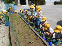 4年生は、ヒョウタンを花壇に植え替えていました。ネットをかけて、つるを上に伸ばす計画のようです。これから生長が楽しみです。