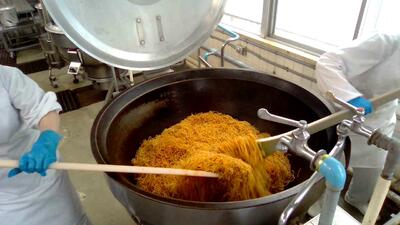鶏肉を煮る美味しそうな香りに、「いい匂い~♪」と釜の前で立ち止まる調理員さんが多数いらっしゃいました