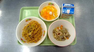 ミーゴレンは、マレーシア風の焼きそばです。インドネシア、シンガポールなどでも食べられています。ケチャップやナンプラーなどの調味料を使った、甘じょっぱい味付けが特徴です。給食では、黒砂糖やしょうゆなども使って、子どもにも親しみやすい味付けにしています。教頭先生のお気に入りメニューだそうです♪