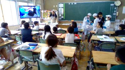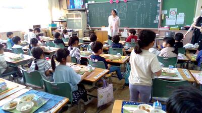 1年生教室で、『苦手な食べ物にチャレンジ』という紙芝居を読み聞かせしました。苦手な食べ物を一番最初に食べてみたら食べられたよという内容です。子ども達は、久しぶりの紙芝居に喜んでいました。今日の給食で苦手な食べ物があるかを聞いてみると…なす、にら、ねぎ、梨、牛乳等、いろいろです。無理する必要はないですが、頑張って食べて報告してくれる子がたくさんいました
