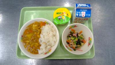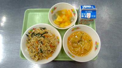 【献立】牛乳 ドライカレー 海藻サラダ 甘夏
