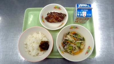 1年生では、お肉は好評でしたが、ハリハリ漬けが残ってしまうクラスが見られました。切り干し大根の食感や塩昆布の味付けは、好き嫌いが分かれるようです。高学年はとてもよく食べていました