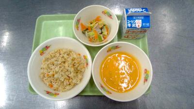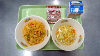 【献立】牛乳 パエリア ポテトスープ 小魚