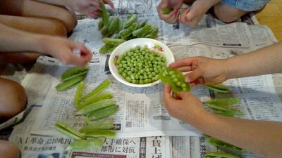 お忙しい中、枝豆もぎ取り(3年生)と、とうもろこし皮むき(5年生)の指導のために来て下さった中田さんと森永さん、本当にありがとうございました