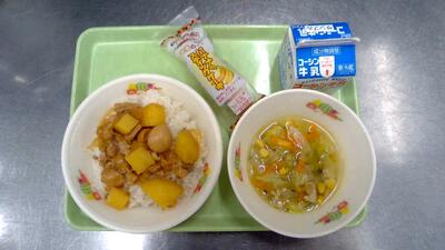 今日はどの料理も子ども達に好評でした。「今日は全部美味しかったです。いつもありがとうございます」「さつまいもの料理はどう作るんですか?」等声をかけてくれる子が何人もいました