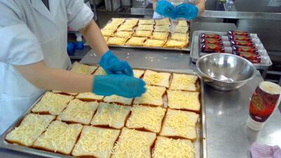 【献立】牛乳 はちみつチーズトースト 野菜ソテー ポークビーンズ
