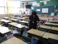 地震発生の放送がかかると、1年生は素早く机のしたに潜って頭を守る姿勢をとり、次の指示が出るまで静かにじっと待つことができました。