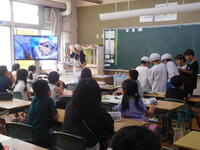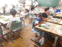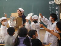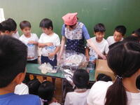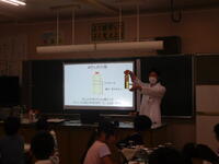 今日は、キッコーマンから講師をお招きして、3年生がみりん塾で学習しました。みりん博士から、みりんの原料や作り方、料理で使うことの良さなどを教えていただきました。子ども達熱心に話を聞いて、わかったことをノートに書き留めていました。実際にみりんの絞り粕を見せてもらうと興味心身で顔を近づけてみたり、においをかいでみたりしていました。