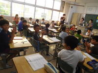 今日、流山市俳句協会の方々をお招きして、3年生が俳句教室を行いました。一つのものから、浮かび上がる言葉をみんなで考えたり、一つの言葉をほかの言葉で言い換えられないかを考えたりしました。児童は、目を輝かせて熱心に話をきいていました。また、その時間に作った俳句を先生方に紹介してもらって、とても嬉しそうにしている児童もたくさんいました。自然や言葉について、深く考えることができた授業でした。
