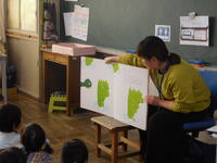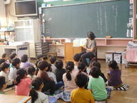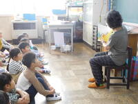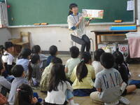 5月17日には、「おはなしのもり」の皆様による読み聞かせの日でした。今回は1年生の教室へきてくださいました。素敵な声と表情で読んでくださり、子ども達は絵本の世界に引き込まれていました。大型絵本も見せてもらい、「おおっきい!」と楽しく読み聞かせの時間を過ごしていました。