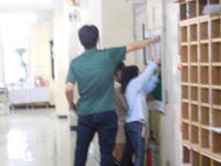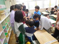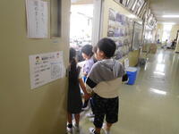 今日は、1年生が学校探検をしていました。5月9日には、2年生に教えてもらいながら探検していましたが、今日は1年生だけでグループを組んで探検していました。本校は、校長室・会議室・職員室が並んでいます。子ども達は興味津々で校長室から職員室や会議室をのぞいたり、校長室の歴代校長先生の写真を見たりしていました。「校長先生はどんなお仕事をしているのですか?」「一番好きなお仕事は何ですか?」などの質問をした児童が多くいました。「今、質問していいですか?」と礼儀正しくできていて、立派だなと感じました。