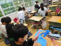 今日は、委員会活動が行われました。掲示委員会が6月の掲示物を作ったり、放送委員会が4月からの活動を振り返ったりして、学校をより良くするための活動を進めていました。5年生も6年生の教わりながら、仕事に一生懸命取り組んでいました。