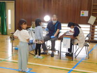 今日は、歯科検診が行われました。5名のドクターがいらしてくださいました。体育館での健診でしたが、きちんと整列して静かに待つことができました。昨日から養護教諭の教育実習に来ている実習生は、検診の結果を素早く記録していました。